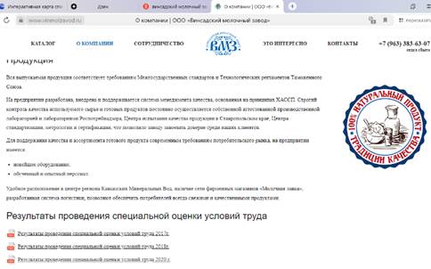 Рис.25.Страница официального сайта ООО «Винсадский молочный завод».