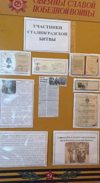 Рис. 13. Стенд с участниками Сталинградской битвы. Фотограф Скачкова Анастасия. Школьный архив. 15.02.2017