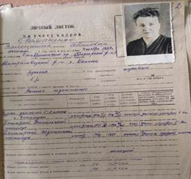Рис. 20. Личное дело Валентины Ивановны Романенко. С. Винсады МБОУ СОШ № 9. Школьный архив.