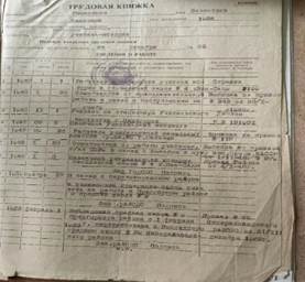 Рис. 21. Трудовая книжка Валентины Ивановны Романенко. С. Винсады МБОУ СОШ № 9. Школьный архив.