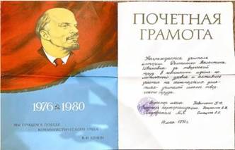 Благодаря школьным архивам, я нашла много информации о её педагогической деятельности: работе во время Великой Отечественной войны и в послевоенное время, про тяжёлые будни учительского труда. Удивило меня, как много Валентина Ивановна сделала для процветания нашей школы и воспитания своих учеников. Не случайно жители села Винсады и педагоги отзываются о ней с теплотой, а награды говорят о признании её педагогических успехов.