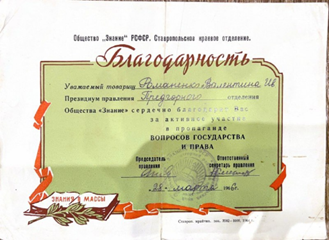 Рис. 33. Благодарность Валентине Ивановне. Архив семьи Романенко.